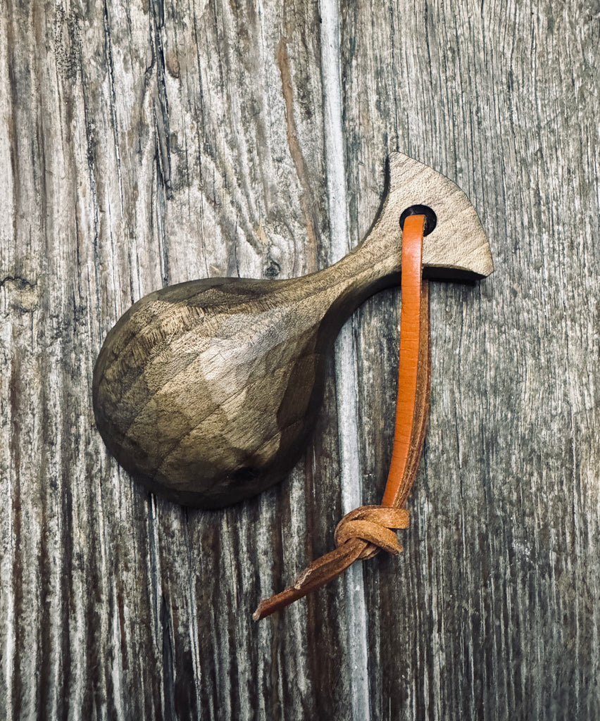 Made from ethically sourced walnut wood, which sadly came down in a storm. Finished with coconut oil with an added thong made from leather . Do not put in dishwasher, please hand wash only.